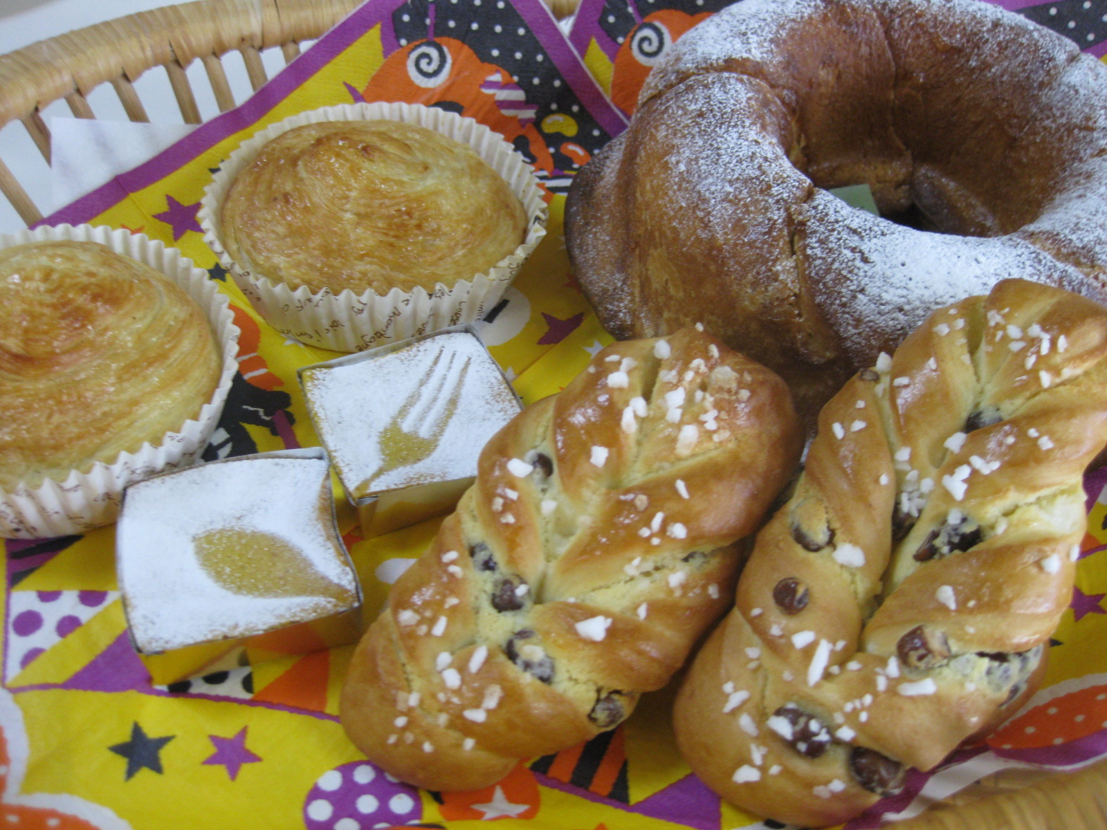 10月9日 準師範クラス 2015年10月7日 | admin ・教師メニュー見直し クランツクーヘン(写真右上) ヨーロッパタイプの菓子パンです。折り込みバターが練りパイ状のもので折り込まれているのが特徴です。 大納言ロール(写真右下) アーモンドクリームに大納言かのこ入り美味しい菓子パンです。 ・新メニュー パンオユズショコラ ・お楽しみメニュー かぼちゃのベークドチーズケーキ