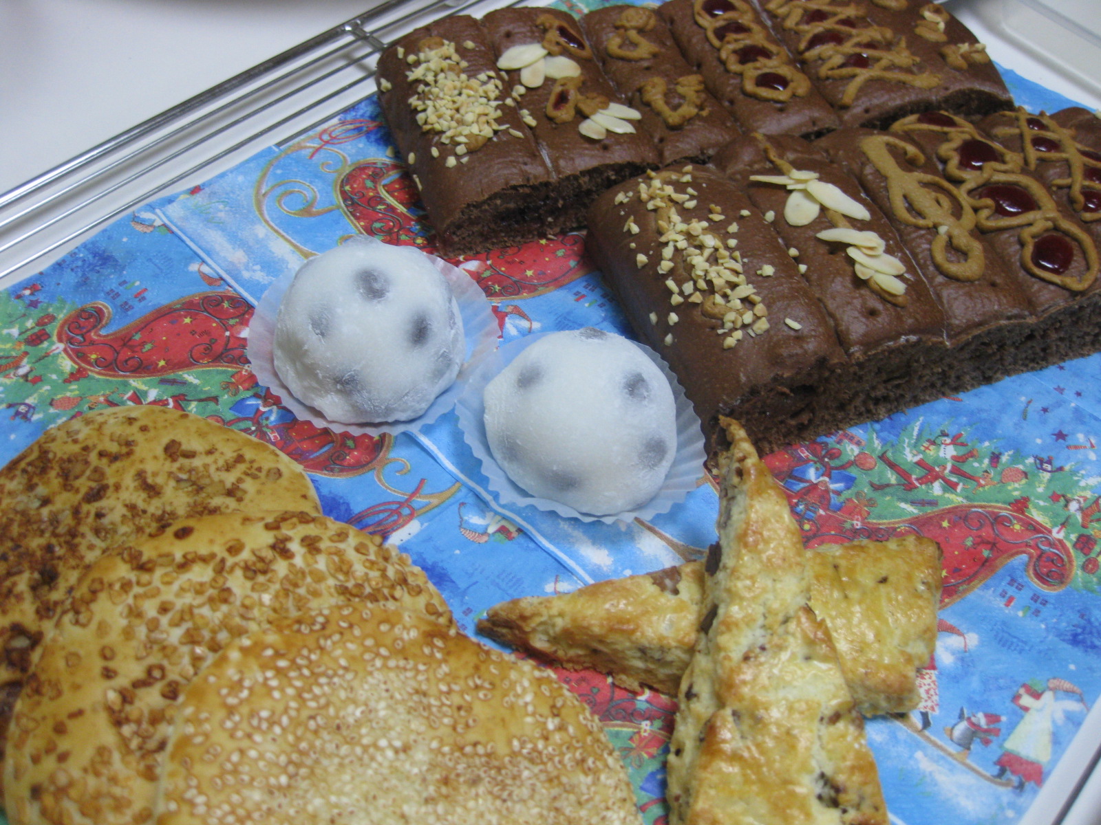 11月17日 お楽しみクラス 2015年11月17日 | admin ☆ファミリーコースと新メニュークラス ・パート1 豆大福 ・新メニュー ディジュイットシュコラ(写真右上) ペラカリ(写真左前) おせんべいみたいにしょうゆを付けて焼きます。 ・お楽しみメニュー スコーン(ナッツ&ショコラ)