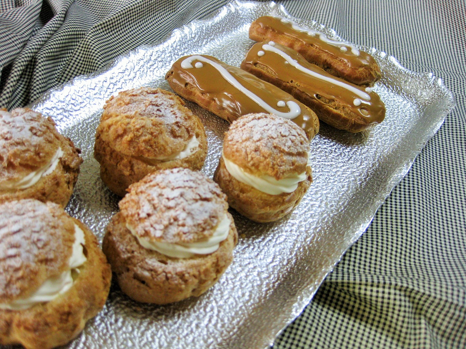 シューの方は白ゴマ入りのサブレを載せてカリッと焼いてます。