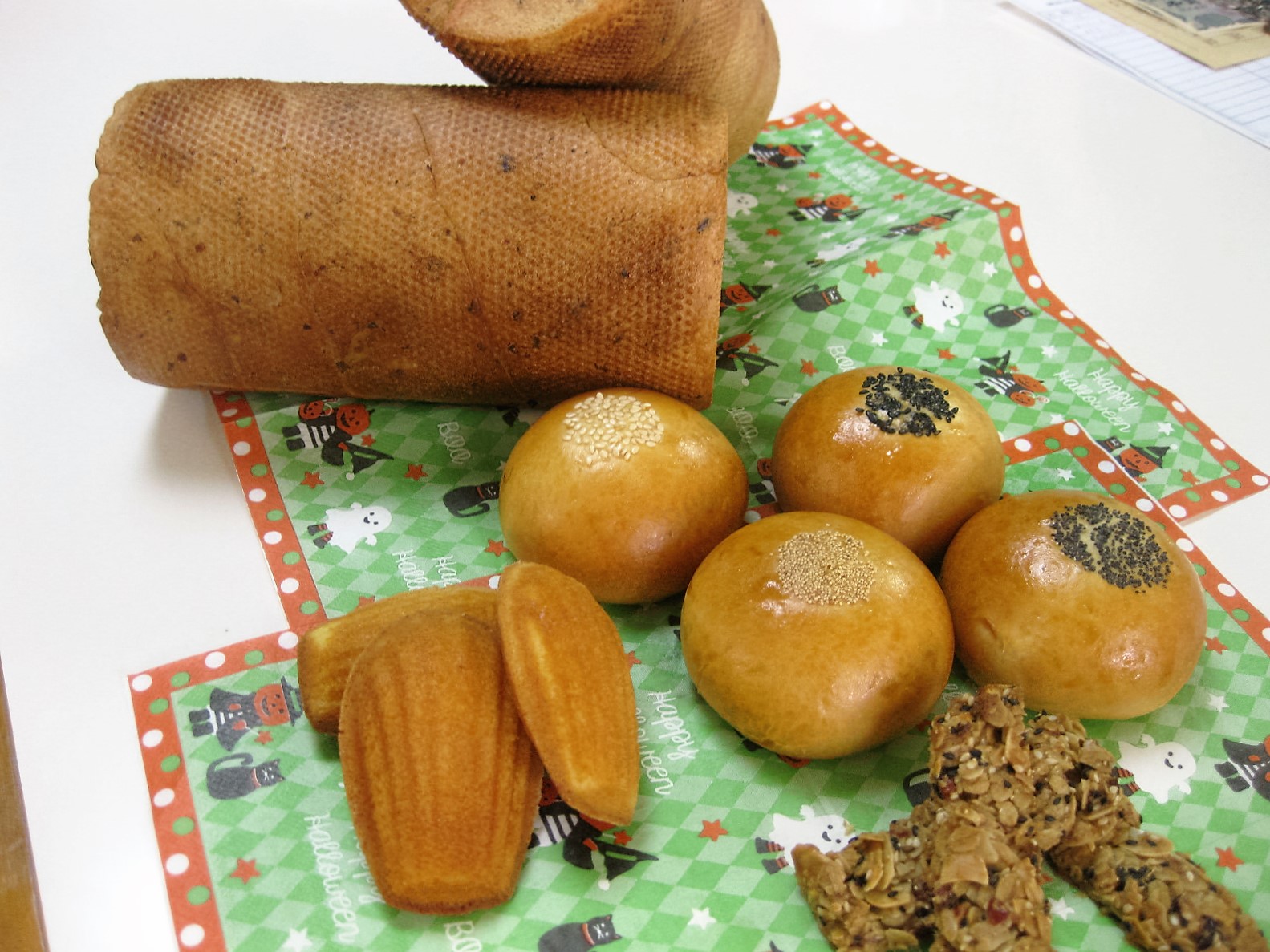 10月21日 準師範クラス 2016年10月21日 | admin ・ファミリーコースパート1見直しメニュー あんパン おへそのないあんぱんです。 マドレーヌ フランスタイプ。2~3時間ねかせて焼成します。 ・新メニュー グレインブレット ・お楽しみメニュー メイプルグラノラーバー ※午後2時7分鳥取倉吉が震源の地震があり岡山市も揺れました。色んな方が心配してご連絡下さり嬉しかったです。
